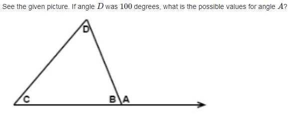 See the given picture. If angle D was 100 degrees, what is the possible values for angle A ?