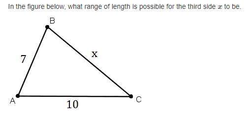 In the figure below, what range of length is possible for the third side x to be.