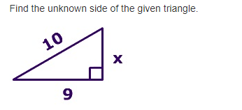 Find the unknown side of the given triangle.