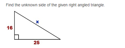 Find the unknown side of the given right angled triangle.
