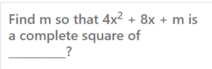 Find m so that 4x2 + 8x + m is a complete square of __________?