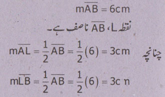 جواب نمبر 10 - تنصیف سے مراد ہے کہ کسی قطعہ خط یا کسی زاویے کو دو برابر حصوں میں تقسیم کردیںا-