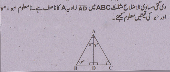 جواب نمبر 6 - جس مثلث کے دو اضلاع متماثل ہوں اسے متساوی الساقین مثلث کہتے ہیں.
