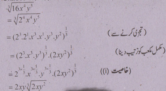 جواب نمبر 3 - اگر N ایک مثبت صیح عدد ہو جو صیح عدد 1 سے بڑا ہوتو ایک حقیقی نمبر x جو حقیقی نمبر a کا n واں روٹ ریڈیکل کہلاتا ہے. حقیقی نمبر 2 ریڈیکنڈ یا ریڈیکل کی بنیاد کہلاتا ہے.