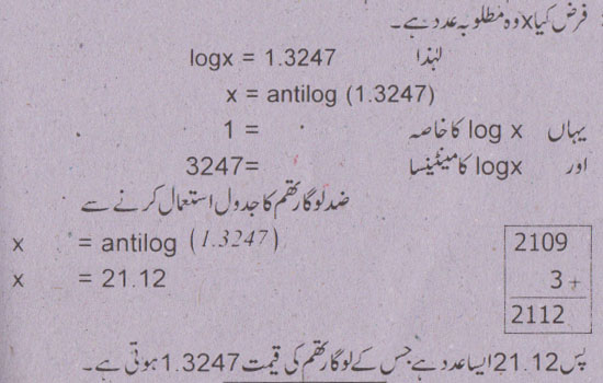 جواب نمبر 28 - خاصہ : کسی عدد کے لوگارتھم کے صحیح عدد حصے کو لوگارتھم کا خاصہ کہتے ہیں.