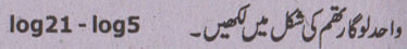 جواب نمبر 4 - عام لوگارتھم میں اساس 10 ہوتا ہے. جبکہ قدرتی لوگارتھم میں e کو اساس کے طور پر لیا جاتا ہے.