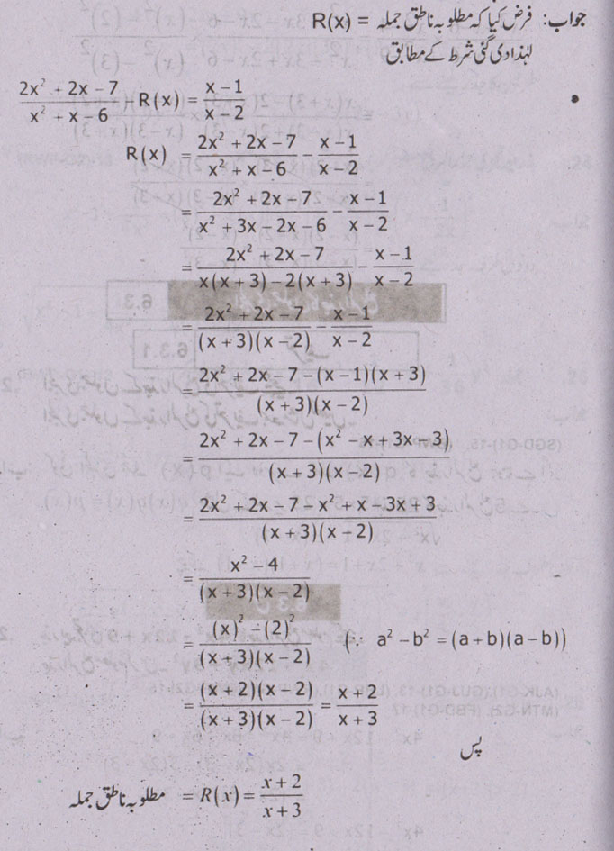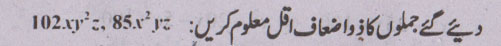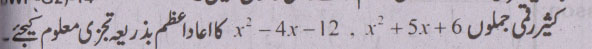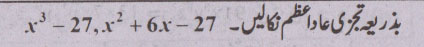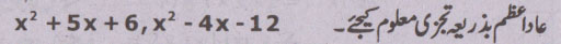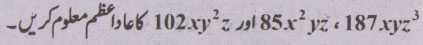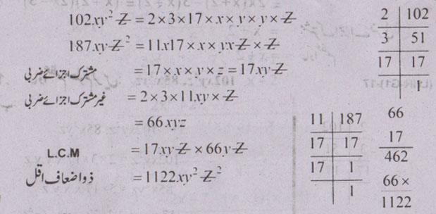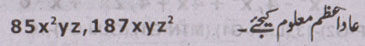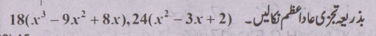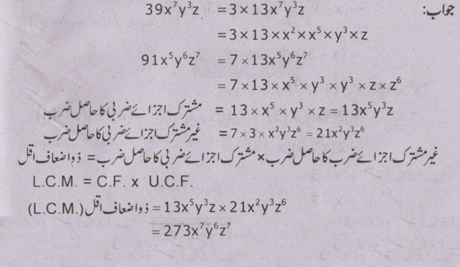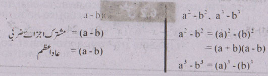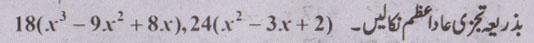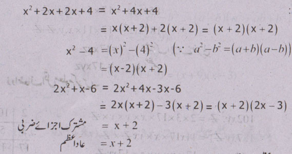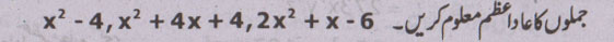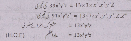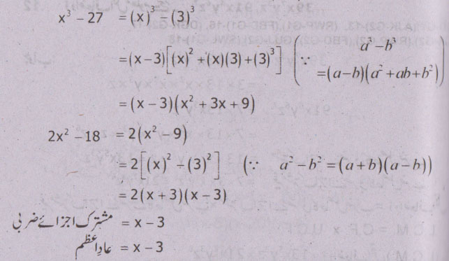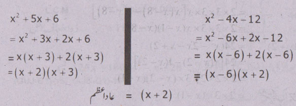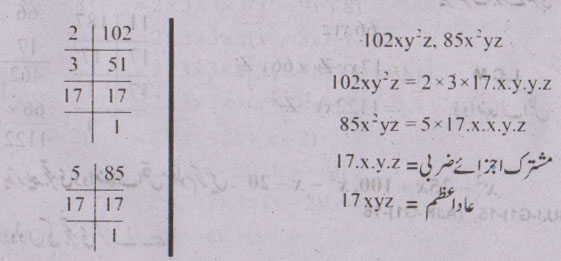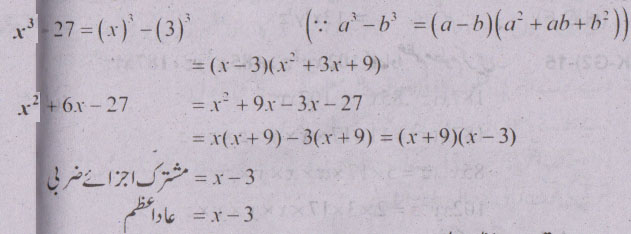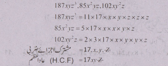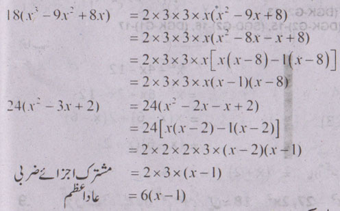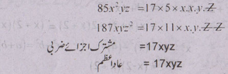 جواب نمبر 17 - اگر دو یا دو سے زیادہ الجبری جملے دیے گئے ہوں تو ان کے مشترک اجزائے ضربی کی بڑی سے بڑی قوت کو دیے ہوئے جملوں کا عاد اعظم کہا جاتا ہے.