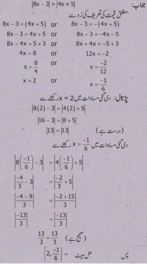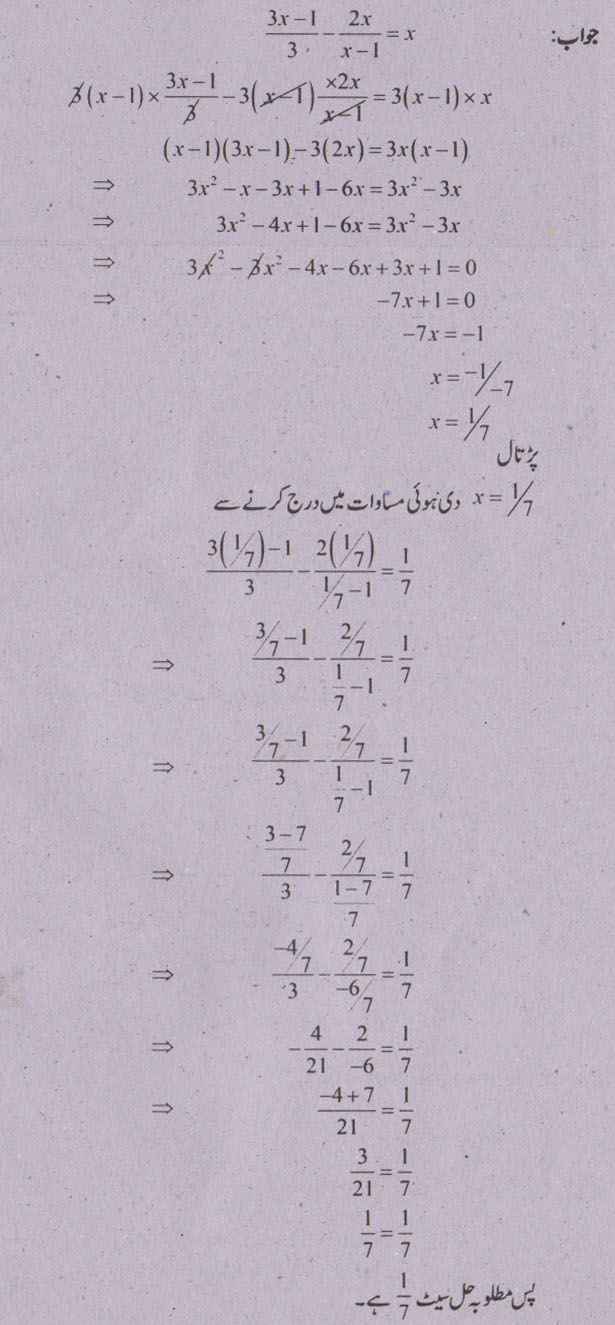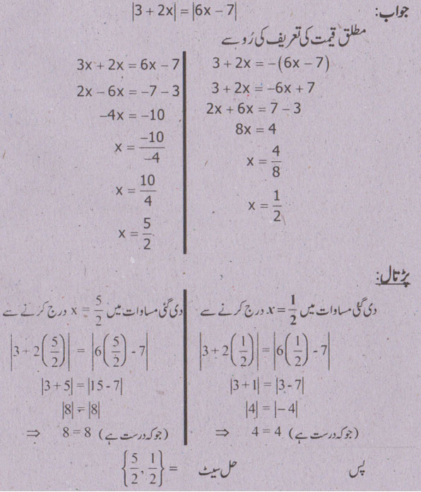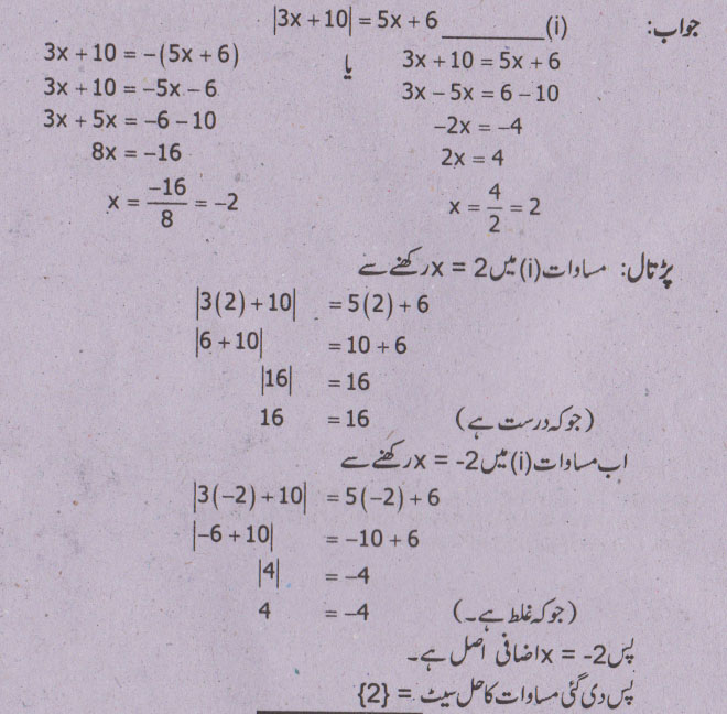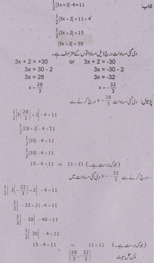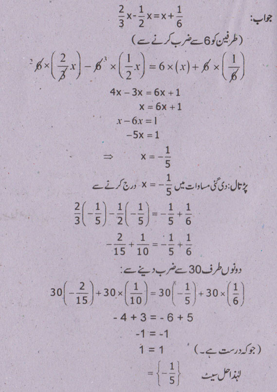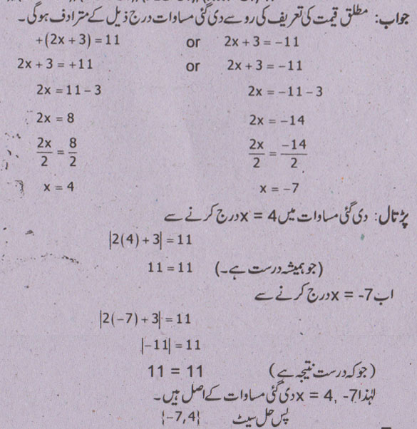 Chapter 7 Linear Equations And Inequalities Math 9th Class Punjab Short Questions