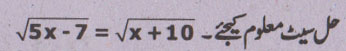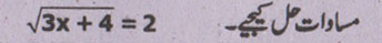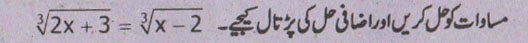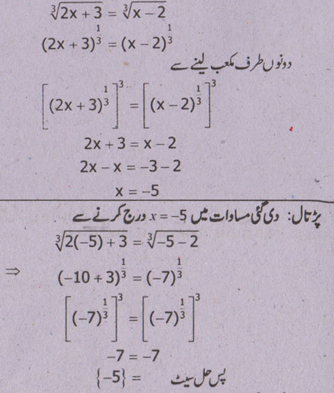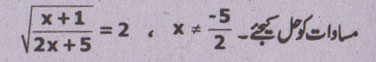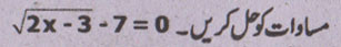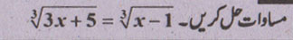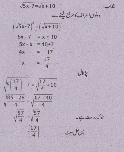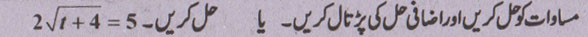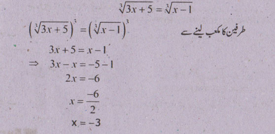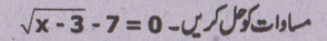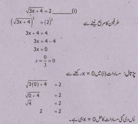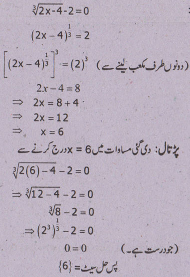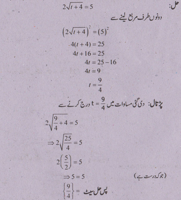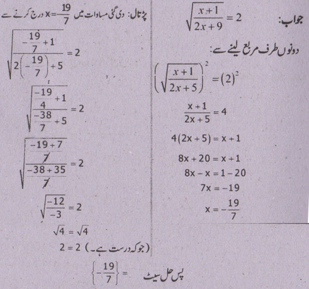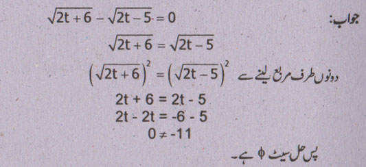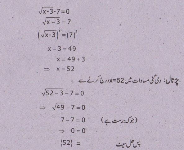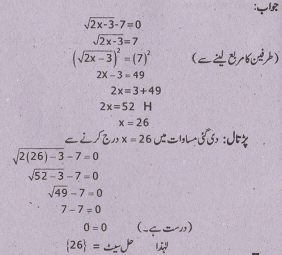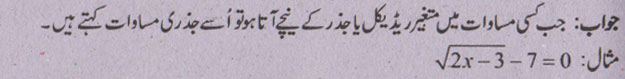 جواب نمبر 36 - جب کسی مساوات میں متغیر ریڈیکل یا جزر کے نیچے آتا ہوتو اُسے جزری مساوات کہتے ہیں.