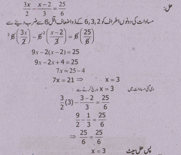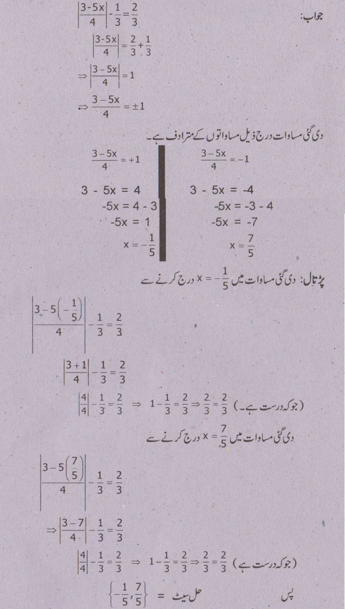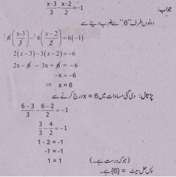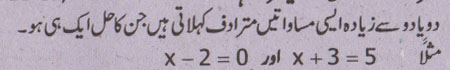 جواب نمبر 20 - دو یا دو سے زیادہ ایسی مساواتیں مترادف کہلاتی ہیں جن کا حل ایک ہی ہو. X+3=5 x-2=0