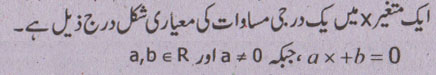 سوال نمبر 8 - یک درجی مساوات کی تعریف کریں.