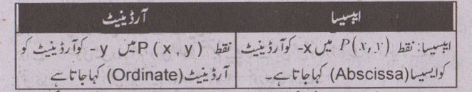 جواب نمبر 23 - کارتیسی مستوی میں واقع کسی بھی نقطے کے y- کوارڈینیٹ کو صرف آرڈینیٹ بھی کہتے ہیں.