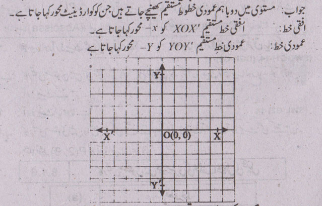 جواب نمبر 26 - کارتیسی مستوی میں باہم عمودی خطوط کے جوڑے کوارڈی نیٹ خطوط کہلاتے ہیں.