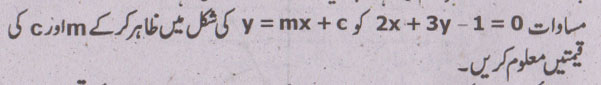Chapter 8 Linear Graphs Math 9th Class Punjab Short Questions