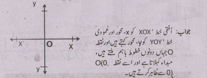 جواب نمبر 15 - مستوی کے باہم عمودی خطوط کے مشترک نقطے کو مبدا کہتے ہیں.