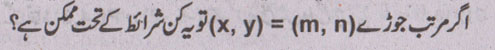 سوال نمبر 19 - اگر مرتب جوڑے (x,y)=(m,n) تویہ کن شرائط کے تحت ممکن ہے؟