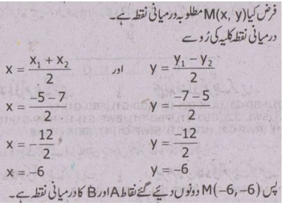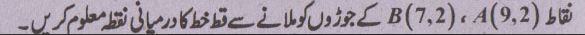 سوال نمبر 23 - دو نقاط کا درمیانی نقطہ معلوم کرنے کا فارمولا لکھیں.